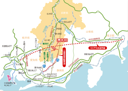 リニア中央新幹線とは、全国新幹線鉄道整備法(以下「全幹法」)の基本計画路線に位置付けられている「中央新幹線」を、時速500kmで走行する 超電導リニアモーターカーにより、東京都を起点に、甲府市付近、名古屋市付近、奈良市付近を主な経過地として、終点大阪市までを結ぶ新幹線のことをいいます。この計画が実現すれば、東京~大阪間が約1時間で結ばれることになります。