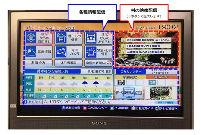 ・写真の赤枠の箇所に、村が制作した番組を配信しています。